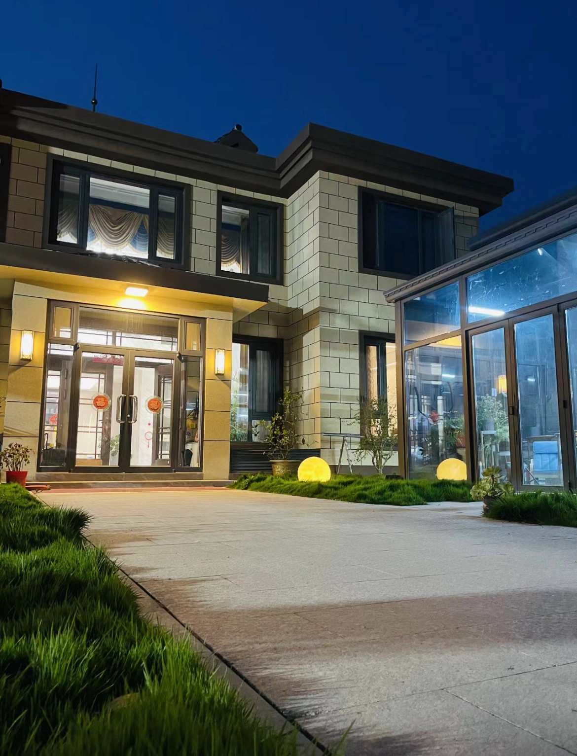 一栋别致的乡村别墅,真石漆icon和木纹的材料搭配既时尚又温暖,L形的平面布局半围合的庭院,这一方场地就是很好的家庭活动空。